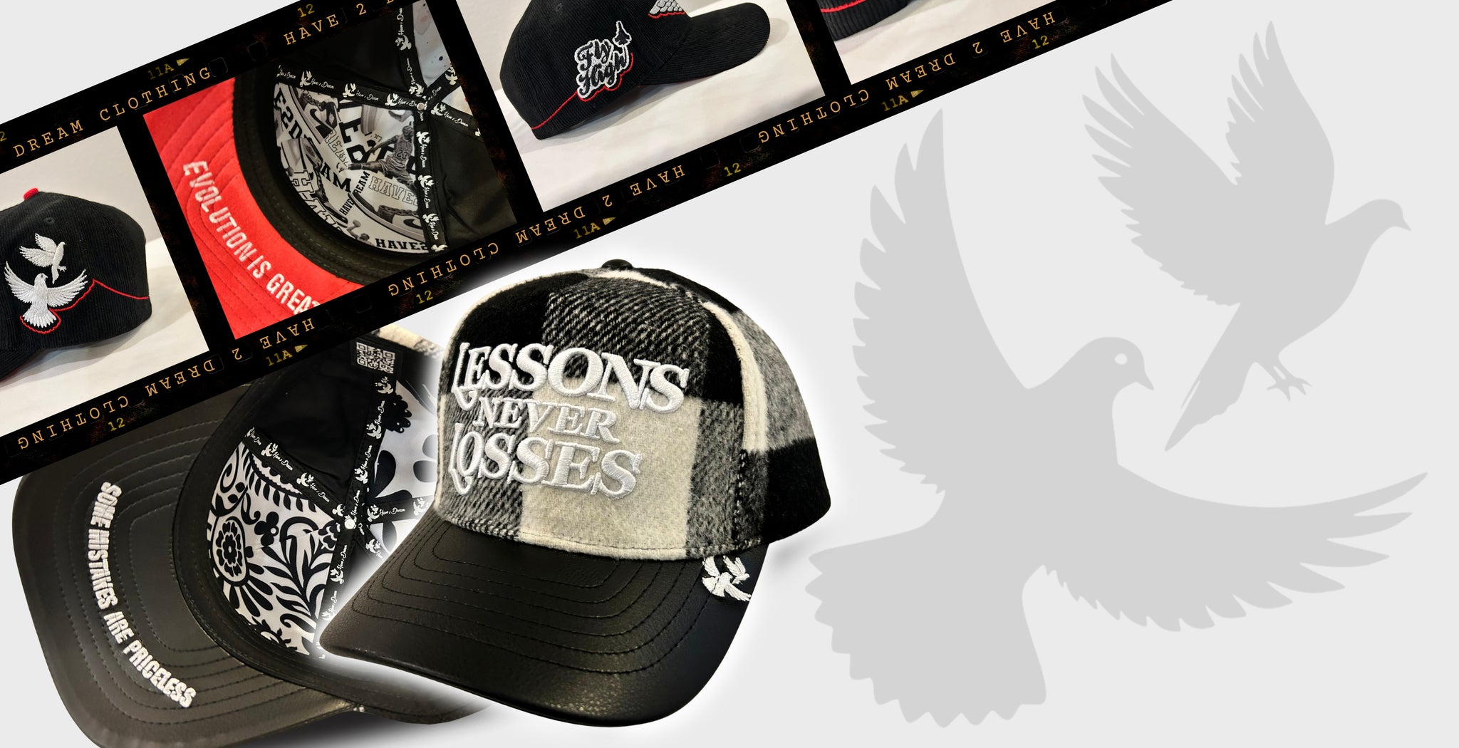 With 2 doves as the logo, the smaller one representing a dream and the other a reminder to grow bigger and follow that dream....Have 2 Dream Clothing continues to be the staple brand for the Relentless and Passionate pursuer of purpose.