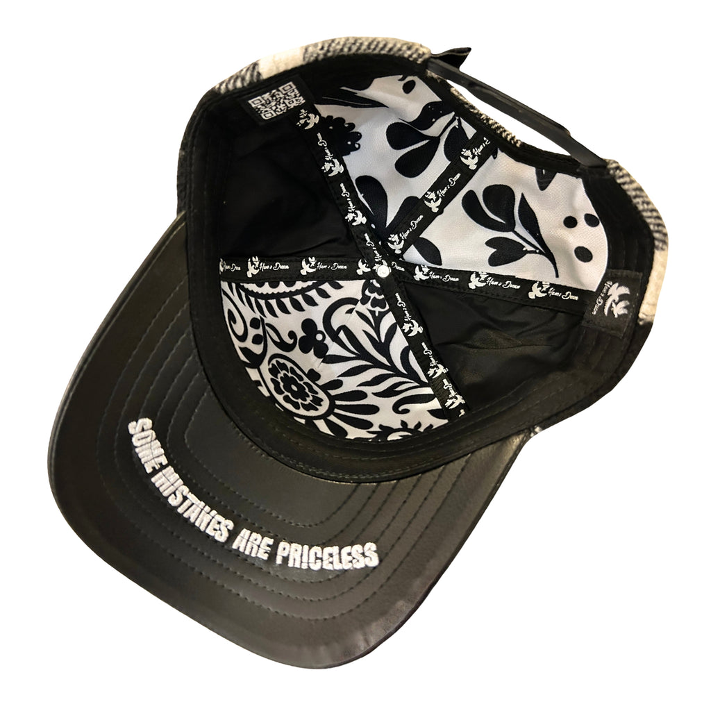Brim: Black Leather with White Embroidery